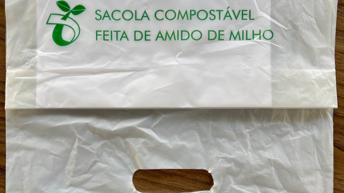 A sacola “compostável” feita de “amido de milho” leva o prêmio de greenwashing do mês. É impossível criar uma sacola flexível e resistente só com amido – a informação é enganosa. Além disso, “compostável” sugere que ela se degrada facilmente, mas isso só acontece em usinas industriais de compostagem, onde 90% vira dióxido de carbono em 180 dias, sem beneficiar o composto. Na natureza, ela gera microplásticos.